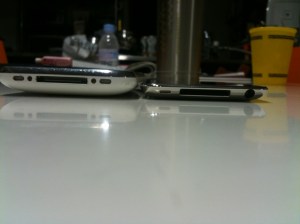 1.iphoneに比べて格段に薄くて、あれとほとんど同じ物があの中につまっているとは信じられません。(投稿した後に、iphoneとipod Touchの薄さを比べた写真を追加したので見ていなければ見てみてください)