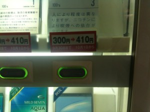 先週くらいからタバコの自動販売機の価格表示の変更作業も始まっており、当社の喫煙室の中に設置してある自動販売機も作業員が来て設定し直していた。
